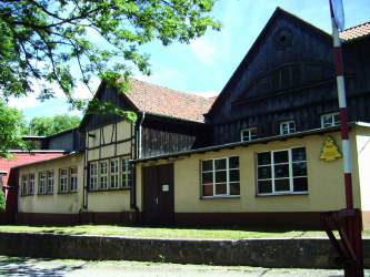 The rolling mill buildings were built in 1834 and 1840, where the rolling mill stands were located. The left house from 1834 for rolling various bar iron sections and the right one for the production of thick wire, fine flat and "facone iron" (including oval iron sections). Between the two was a building to house the large waterwheel for driving the rollers, which at that time had a diameter of 21 3/4 feet (approx. 6.3m) and a width of 9 feet (2.6m), and which received the necessary impact water from the first slope through a wooden channel. After the privatisation the model carpentry workshop was set up in the right house and a small rye mill with a roller mill in the left one.