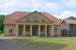 Von allen heute noch bestehenden Hüttengebäuden ist dieses ein wirkliches Kleinod. Es gehört mit der Erbauungszeit 1816/17 in die zweite Bauphase der Hütte. Entsprechend der damaligen Zeitströmung wurde dieses Gebäude im streng neoklassizistischen Stil errichtet. Der Protikus wird hier von Eckpfeilern und von vier auf der Königshütte gegossenen Säulen mit dorischen Kapitellen getragen. Bemerkenswert sind die gusseisernen Akanthusblätter sowohl an den Eckpfeilern als auch am Hauptgebäude. Links und rechts vom Schild "Eisenmagazin" sind gusseiserne Rosetten zu erkennen. Diese Architektur-Elemente dienten auch dazu, Kunden und Gästen zu zeigen, dass man damals solche Teile für Neubauten auf der Königshütte erwerben konnte. Im Jahre 1881 wurde ein drei Meter vorkragendes Vordach vor die Fassade errichtet, um für ankommende Fahrzeuge eine größere Überdachung zu erreichen. Dieses Dach ließ man später wieder entfernen. Ob diese Frontseite mit gusseisernen Heiligen- und Apostelfiguren geschmückt war, kann noch nicht eindeutig bestätigt werden (siehe Slotta, 1983, S. 51).