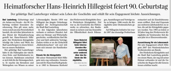 Der Artikel ist auch in dem Buch ‚‘ Rainer Kutscher – Eisenhüttenwerke und Gießereien‘ zu finden, in dem Buch geht es um die Königliche Eisenhütte Lerbach, die Gelbgießerei Schubert und Karnebogen, die Metallgießerei E. Heine, Nachfolger, die Eisengießerei Ernst Müller, Freiheit und die Königshütte Lauterberg